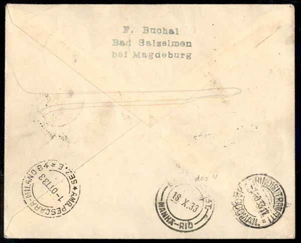 9° Volo in Sud America/50 Ozeanuberquerung Chicagofahrt 14ottobre/2 novembre 1933 - Friedrichshafen Recife (Longhi 815 - Michel 347a) busta da Rodi (Egeo) del 29.9.33