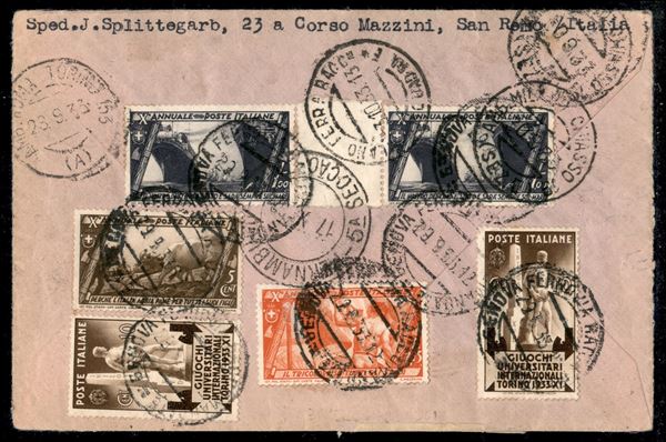 9° Volo in Sud America/50 Ozeanuberquerung Chicagofahrt 14ottobre/2 novembre 1933 - Friedrichshafen Recife (Longhi 823 - Michel 347a) busta da Cittą del Vaticano con affrancatura mista fronte retro Vaticano + Italia - raro