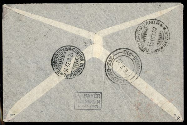 9° Volo in Sud America/9° Sudamerikafahrt - 24/27 ottobre 1932 (Longhi 164 - Michel 286a) busta da Asmara del 27.9.32 per Rio de Janeiro affrancata con valori Eritrea - molto raro - riprodotto sul catalogo Longhi - Longhi