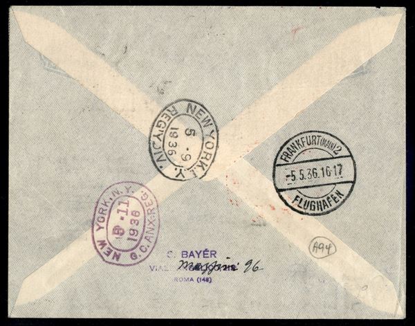 H12 - 1° Volo in Nord America/1° Nordamerikafahrt 6/9 maggio 1936 (Longhi 942 - Michel 12) busta da Roma del 4.5.36
