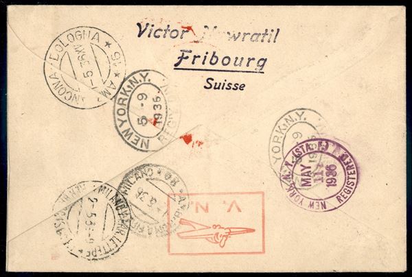 H12 - 1° Volo in Nord America/1° Nordamerikafahrt 6/9 maggio 1936 (Longhi 942a - Michel 12 var) busta da San Marino - unico noto - rarissimo