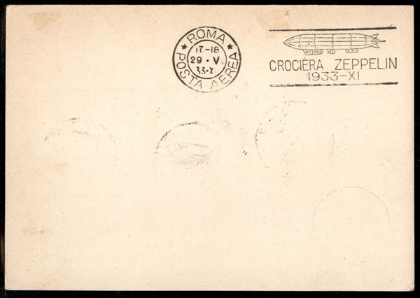 Isole dell'Egeo - Volo di ritorno Roma Friedrichshafen 29 maggio 1933 (Longhi 350 - Michel 304E tipo) cartolina da Rodi del 24.5.33 affrancata con il 10 lire Zeppelin Egeo