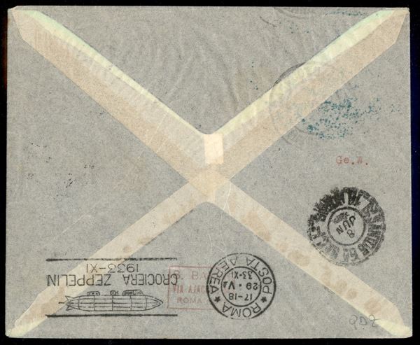 Isole dell'Egeo - Volo di ritorno Roma Friedrichshafen 29/30 maggio 1933 (Longhi 358 - Michel 304Ecb) busta raccomandata da Rodi del 24.5.33 affrancata con il 12 lire Zeppelin Egeo