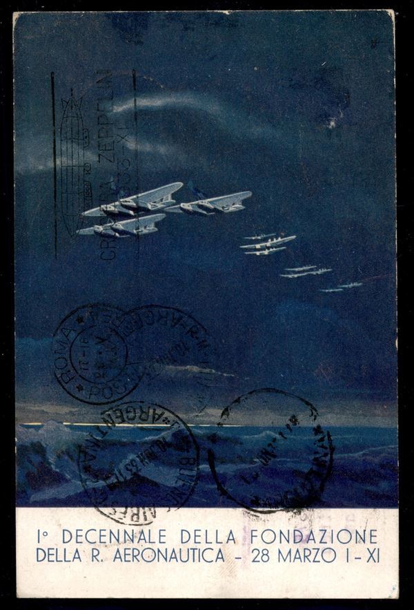 Isole dell'Egeo - Volo di ritorno Roma Friedrichshafen 29/30 maggio 1933 (Longhi 359 - Michel 304Ecd) cartolina raccomandata da Rodi del 24.5.33 affrancata con il 15 lire Zeppelin Egeo - Diena + Longhi