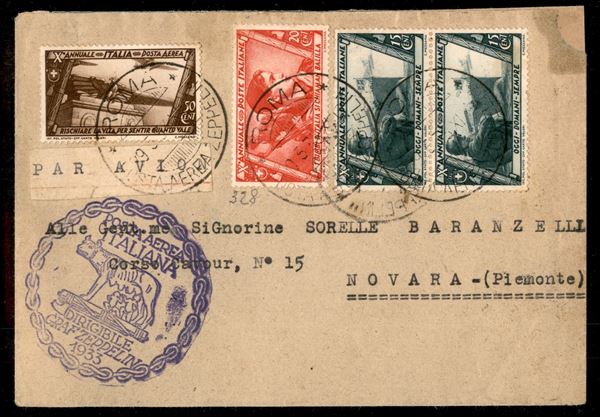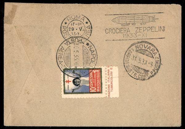 Italia - Volo di ritorno 29 maggio 1933 - lancio su Nettuno (Longhi 453a - Michel 304AI) busta da Roma del 9.5.33 senza affrancatura Zeppelin ma valori della serie Decennale - unico noto
