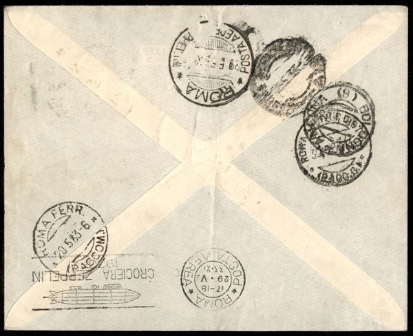 San Marino - Volo circolare Roma/Rom Rundfahrt 29 maggio 1933 (Longhi 581 var./Michel 303D) busta affrancata con il 5 lire Zeppelin senza l'apposizione del timbro speciale "Lupa" - Bolaffi