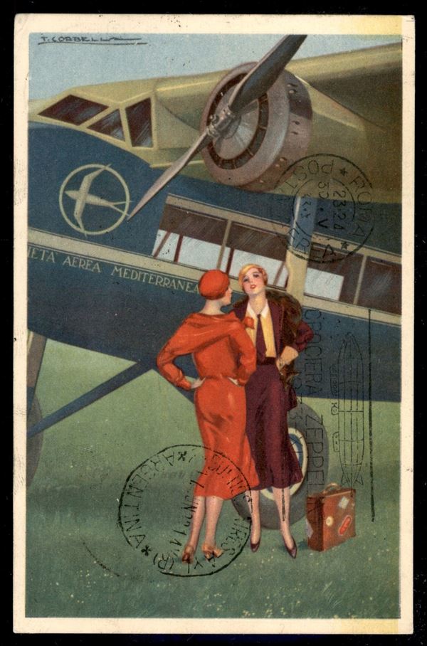 Tripolitania - Volo di ritorno Roma Friedrichshafen 29/30 maggio 1933 (Longhi 699 - Michel 304Gcc) cartolina affrancata con il 15 lire Zeppelin per Buenos Aires - Diena + Bolaffi