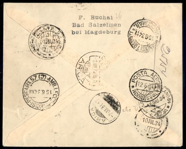 Viaggio in Argentina/Argentinienfahrt 23/30 giugno 1934 (Longhi 871 - Michel 370) busta da Scarpanto (Egeo) - poche lettere note - molto raro