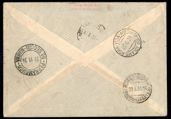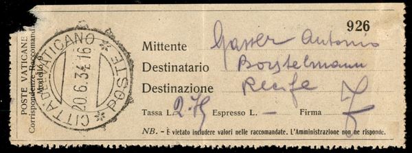 Viaggio in Argentina/Argentinienfahrt 23/30 giugno 1934 (Longhi 877 var. - Michel 370 var.) busta da Cittą del Vaticano con affrancatura mista Vaticano + Italia e i valori di Regno non annullati - con ricevuta di spedizione - raro