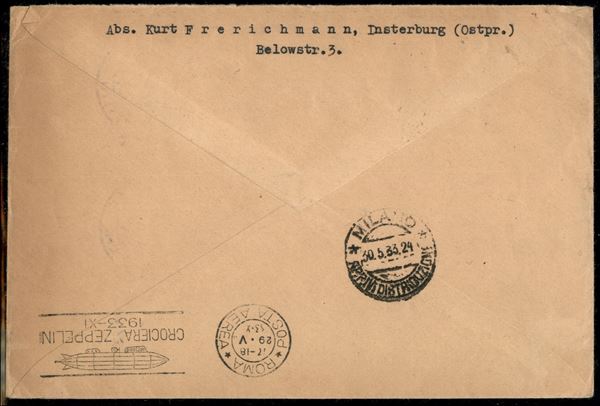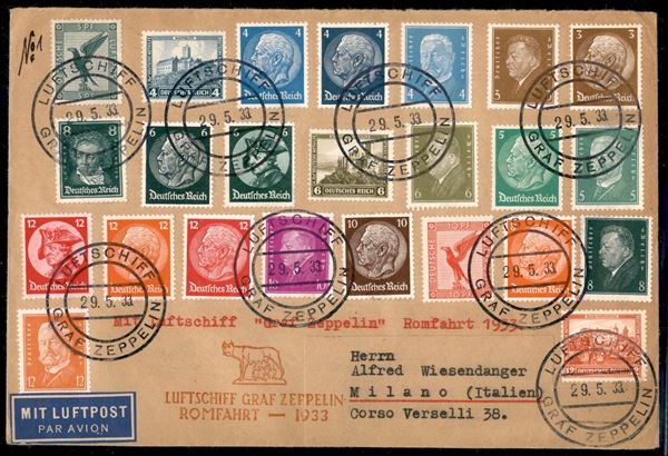 Volo in Italia/Romfahrt - Volo di andata 29 maggio 1933 (Longhi 217 - Michel 302) busta dalla Germania con bella e pregiata affrancatura