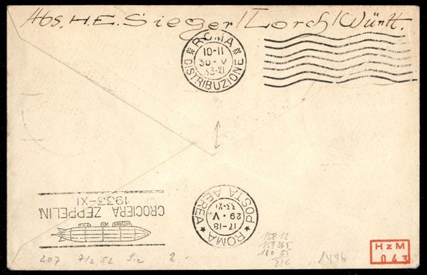 Volo in Italia/Romfahrt - Volo di andata 29 maggio 1933 - posta da paesi esteri (Longhi 227 - Michel 302) busta da Illigen (Sarre) con timbro commemorativo 1100 anni della cittą
