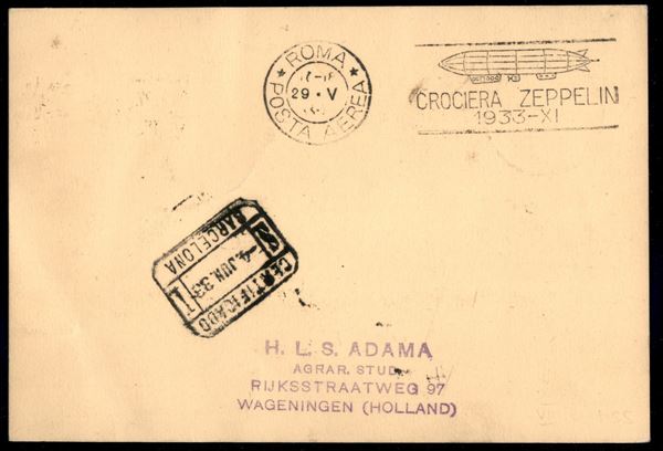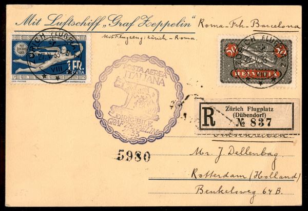 Volo in Italia/Romfahrt - volo di ritorno (29/30 maggio 1933) - lancio su Barcellona (Longhi 265 - Michel 304Ab) cartolina raccomandata dalla Svizzera - Zurich 27.5.33 - raro
