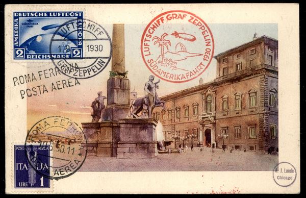 Volo nell'America del Sud/Sudamerikafahrt - 28/31 maggio 1930 (Longhi 31 - michel 66) cartolina da Roma del 10.5.30 per New York con affrancatura mista Italia Germania - 2 cartoline volate - rarissimo