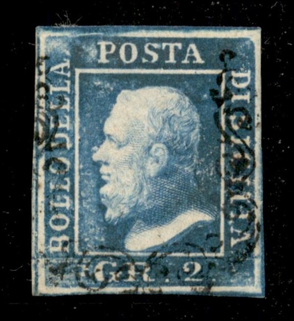 1859 - 2 grana azzurro (8d) - III Tavola - ottimi margini - usato - molto bello