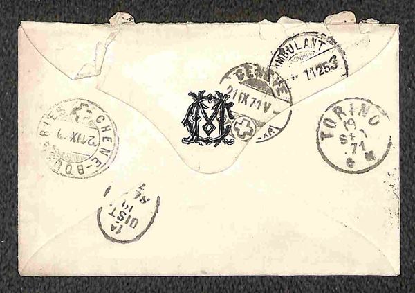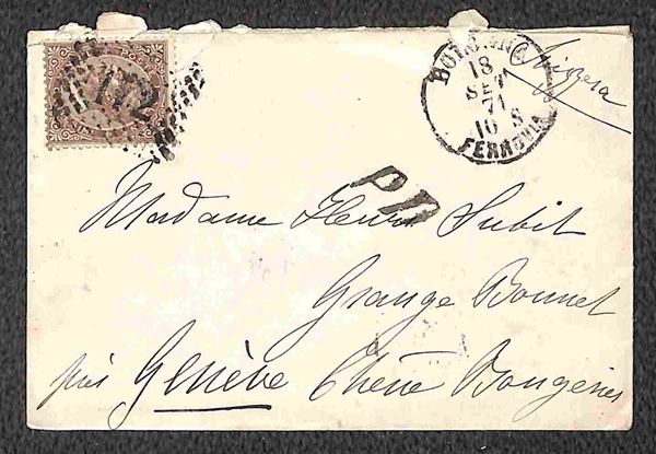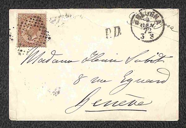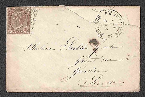 1869/1871 - Piccolo insieme di 5 bustine affrancate con 30 cent (19) di varie tonalità da Bologna e Firenze per la Svizzera