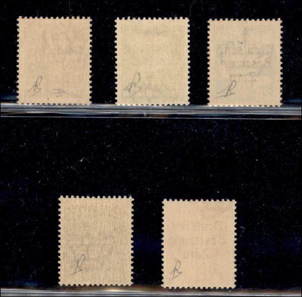 1943 - Cinque valori di Posta Aerea con soprastampa del III tipo (1/5) - gomma integra - molto belli