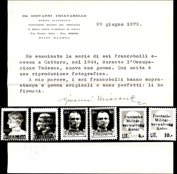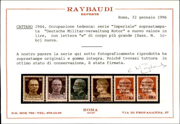 1944 - Soprastampati (1c/6c) con w di w di corpo pił grande - serie completa - gomma integra - cert. Chiavarello + cert. Raybaudi