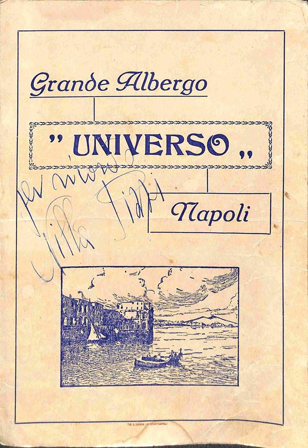 1953/55 - Menù del Grande Albergo Universo di Napoli con al verso pubblicità della LAI per il volo Napoli New York con quadrimotori DC-6B e altre rotte - buona conservazione