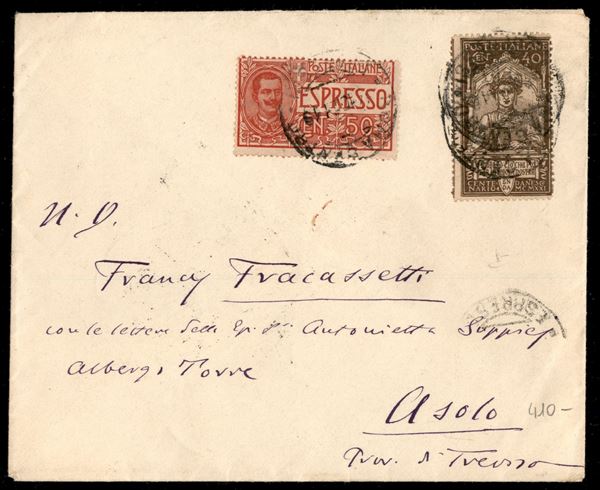 40 cent Dante (118) + 50 cent Espresso (4) su busta da Roma a Asolo del 14.10.21