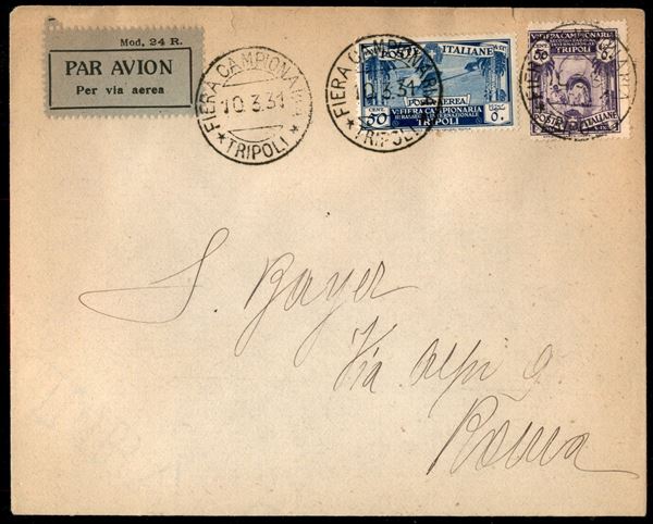 Aerogramma viaggiato dalla Fiera Campionaria di Tripoli per Roma del 10.3.31 - non comune