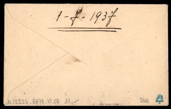 Bustina biglietto da visita in distretto affrancata con 15 cent verde grigio Imperiale sfuggito all'annullamento e obliterato dal postino con bollo circolare a numero - interessante - ex coll. Provera