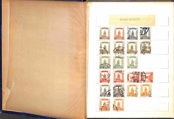 CINA - 1900/1940 circa - Manciuria - Insieme di valori usati del periodo in piccolo classificatore - valori ripetuti - da esaminare