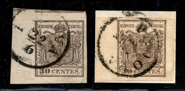 Due esemplari del 30 cent (7/8) - angolo di foglio - usati entrambi a Padova - molto belli