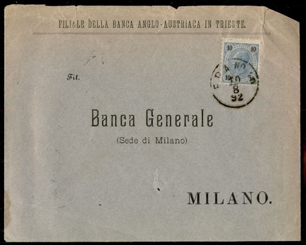 F.P.A. N. 49 - 10 kreuzer (54) su busta da Trieste a Milano del 10.8.1892