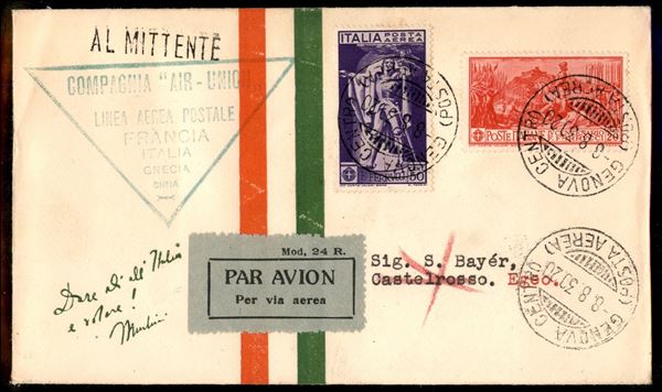 Genova Castelrosso 8.8.30 (Longhi 2212) - aerogramma del volo speciale - 20 volati