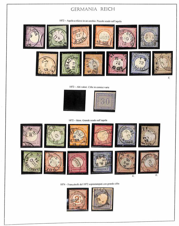 GERMANIA - REICH - 1872/1933 - Collezione molto avanzata di valori usati del periodo compresi i servizi montati in album Safe - alcuni certificati - valore secondo conferente di oltre 13000 euro - merita esame