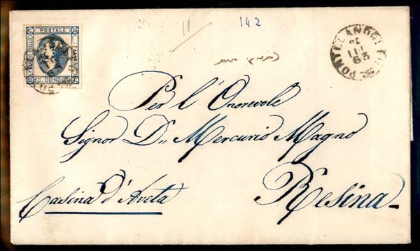 Insieme di quattro lettere affrancate con 15 cent litografico isolato (tre 12 + un 13) - buoni margini - tutte viaggiate nel 1863
