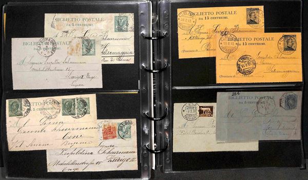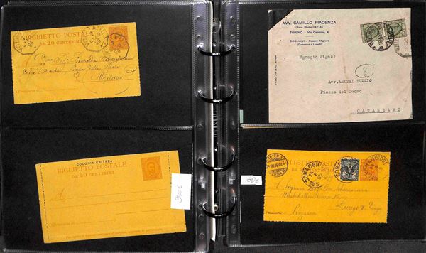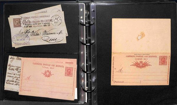 INTERI POSTALI - 1885/1976 - Insieme misto di 105 interi postali del periodo dell'area italiana montati in un album con custodia - diverse ottime presenze pił alcune buste di Regno e Repubblica a completare il lotto - da esaminare