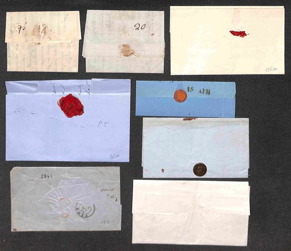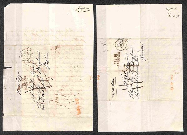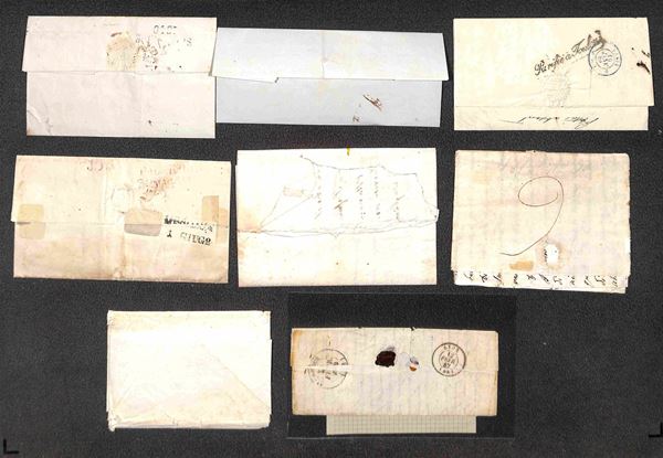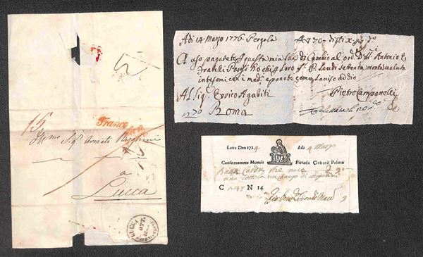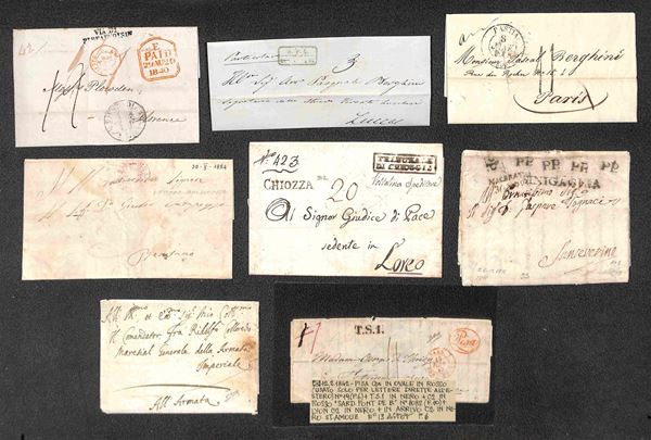 PREFELATELICHE - 1724/1854 - Insieme di 2 assegni e 19 lettere del periodo tra cui Strade Ferrate due incoming mail una lettera con testo della Guerra dei 30 anni e diverse lettere con impronte interessanti tra cui il Pisa ovale rosso - merita esame