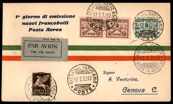 Primo giorno 50 cent Posta Aerea - aerogramma da Cittą del Vaticano a Genova del 12.3.30 (Longhi 2100) - Chiavarello