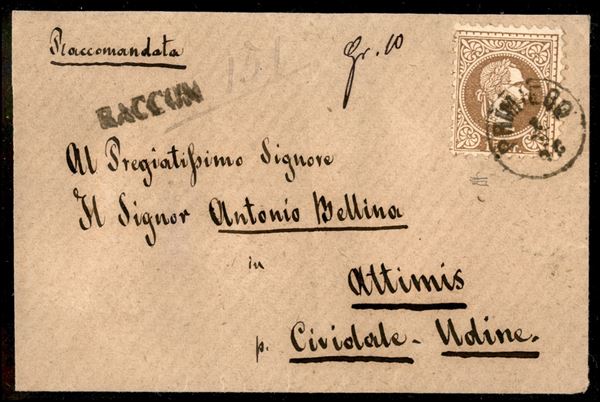 Raccom. di Primiero - 15 kreuzer (36) isolato su bustina per Udine del 1.9.76