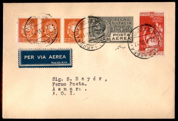 Roma Asmara 22.7.35 (Longhi 3288) - aerogramma del primo volo - 59 volati - Chiavarello