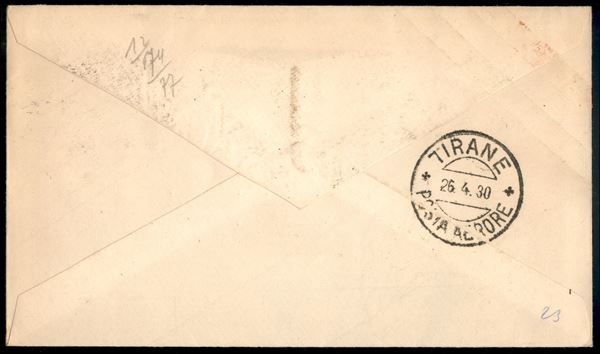 Roma Tirana 21.4.30 (Longhi 2139a) - aerogramma del volo trasportato non per via diretta - Chiavarello