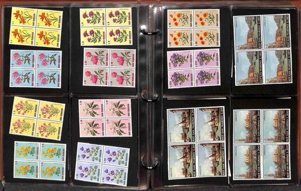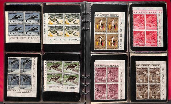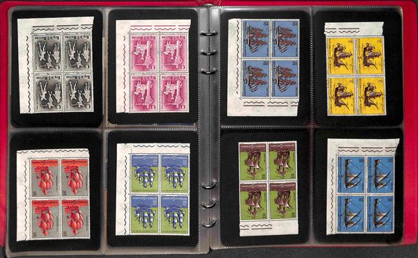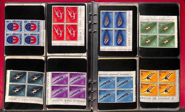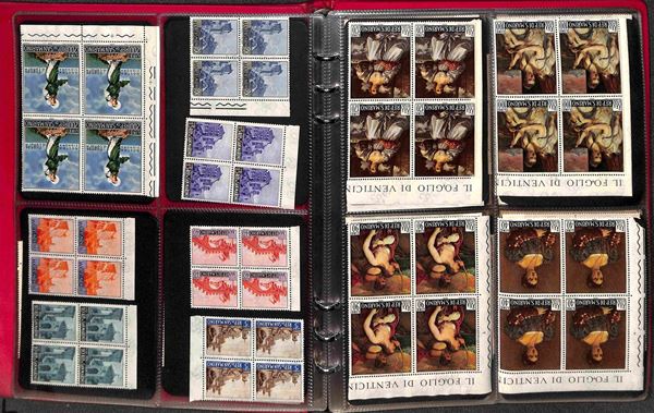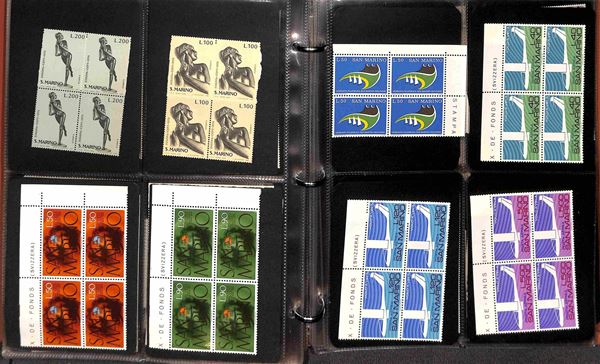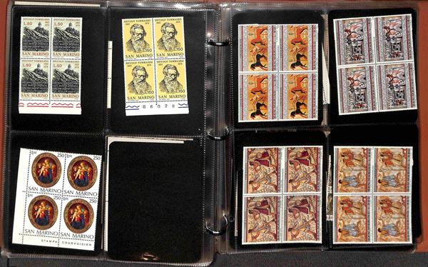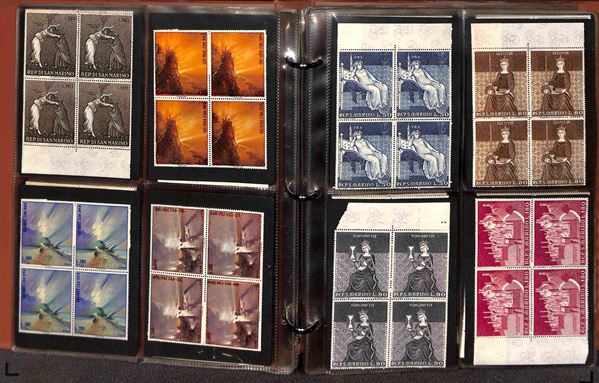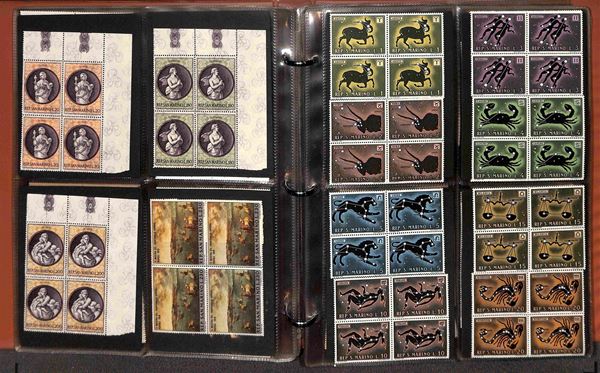SAN MARINO - 1962/1975 - Collezione avanzata di Valori e serie complete del periodo in quartine montati in album con taschine (alcune con valori incollati alla plastica) - gomma integra