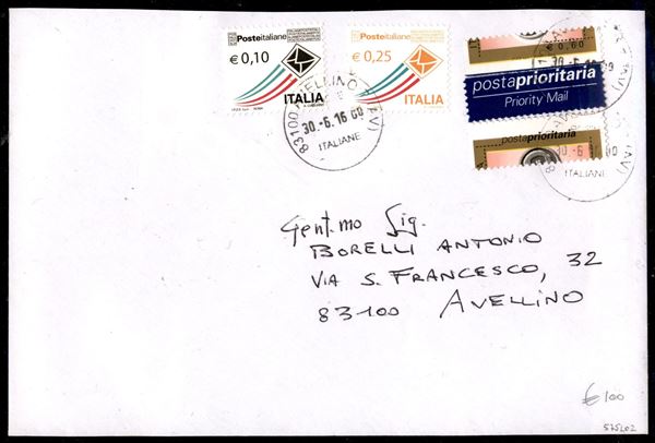 0,60 cent Prioritaria (2747) con dentellatura fortemente spostata (due esemplari a cavallo) + complementari su busta - Avellino 30.6.16