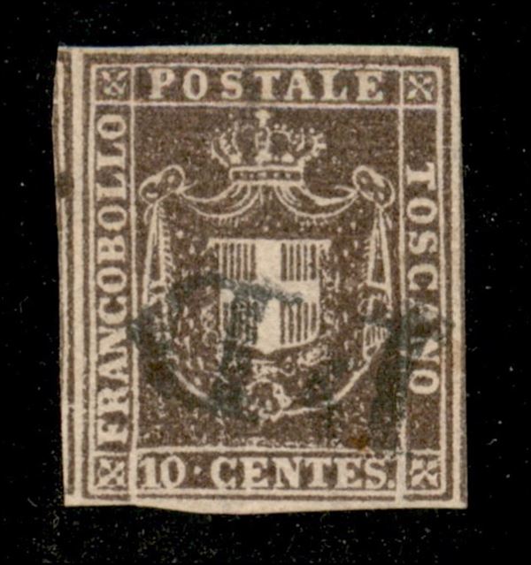 1860 - 10 cent (19) usato - parte di 2 vicini ai lati - cert. AG