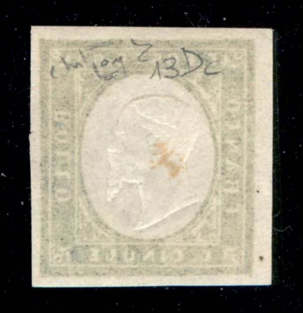 1862 - 5 cent (13Dc - verde olivastro) - gomma integra - piccolo trasudo oleoso al centro - M. Raybaudi