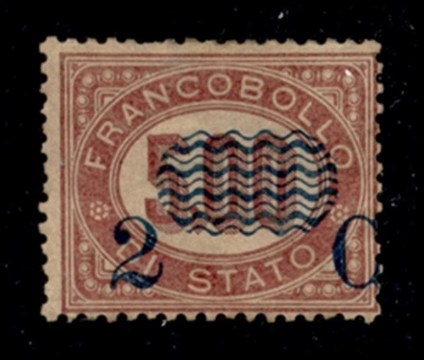 1878 - 2 cent su 5 lire (35 varietà g) - soprastampa spostata a destra (sulla dentellatura) - gomma originale - non quotato