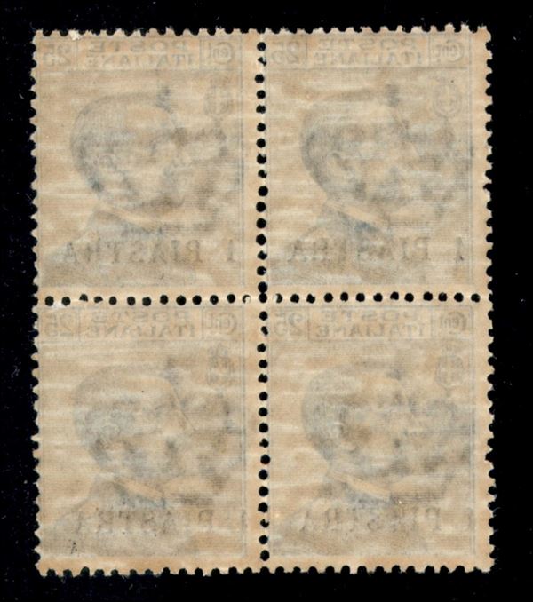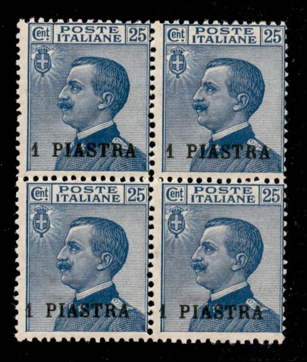 1908 - 1 piastra su 25 cent Michetti (11) in quartina - gomma integra