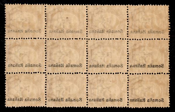 1920 - 5 cent (23 varietà d) - blocco di 12 con decalco (evanescente nella fila superiore) - gomma integra - non catalogato
