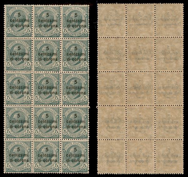1921 - 5 cent su 5 (2) - blocco di quindici - gomma integra