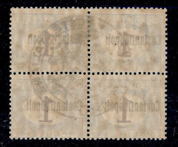 1922 - Quartina del 1 lira (4ab) con soprastampa fortemente spostata a sinistra - gomma originale e integra - molto bella