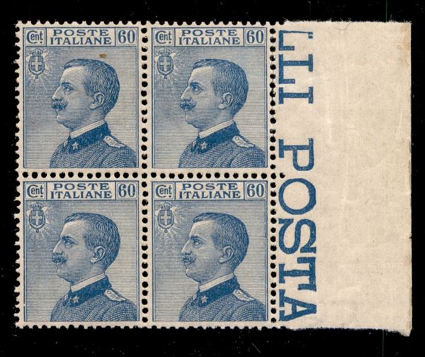 1923 - 60 cent Michetti (157) - quartina bordo di foglio - ottimamente centrata - gomma integra