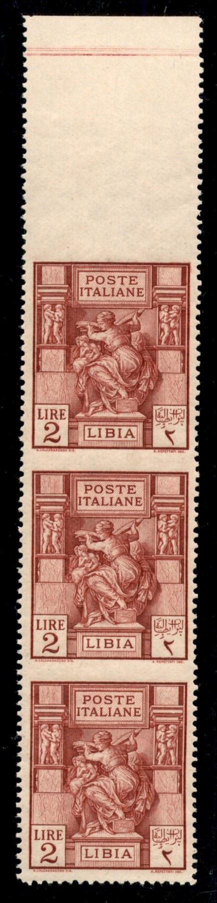 1924 - 2 lire Sibilla (43k) - striscia verticale bordo foglio - dentellatura orizzontale solo in basso - gomma integra - ottima centratura - cert. AG
