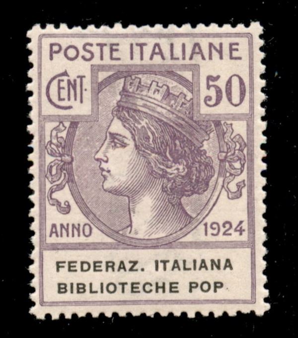 1924 - 50 cent Biblioteche Pop. (36b) senza punto dopo Pop - gomma integra - ben centrato - cert. AG
