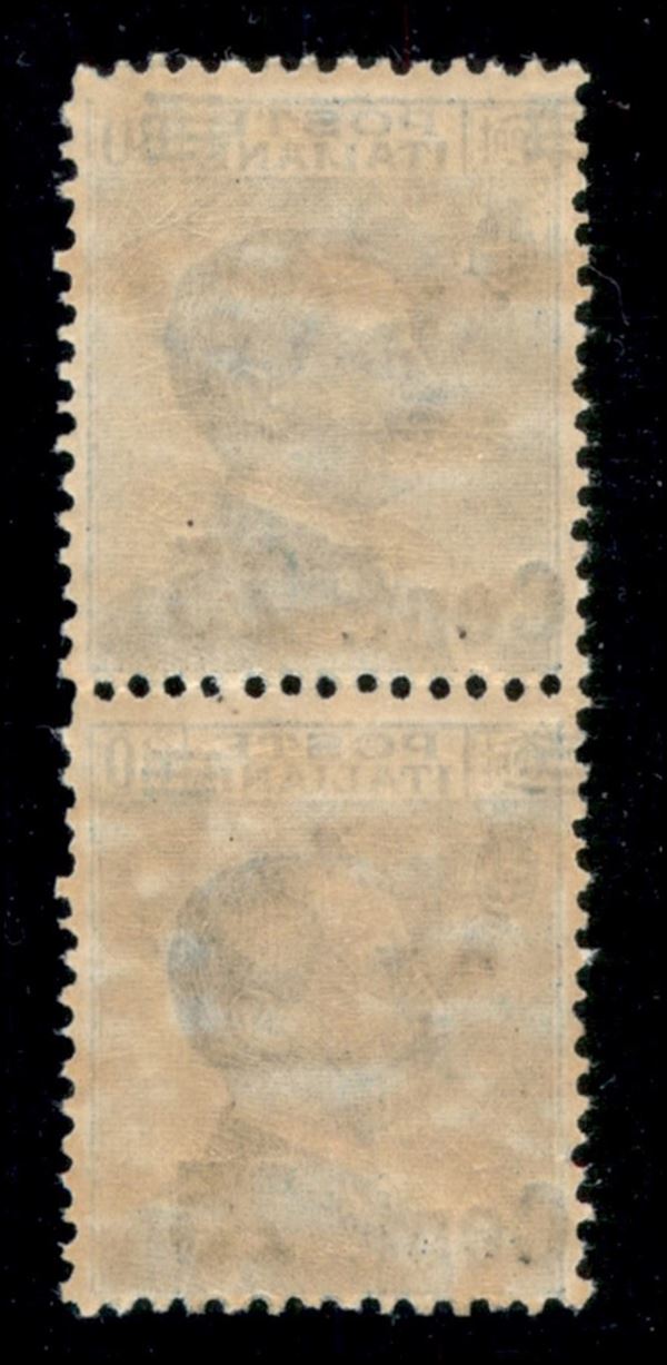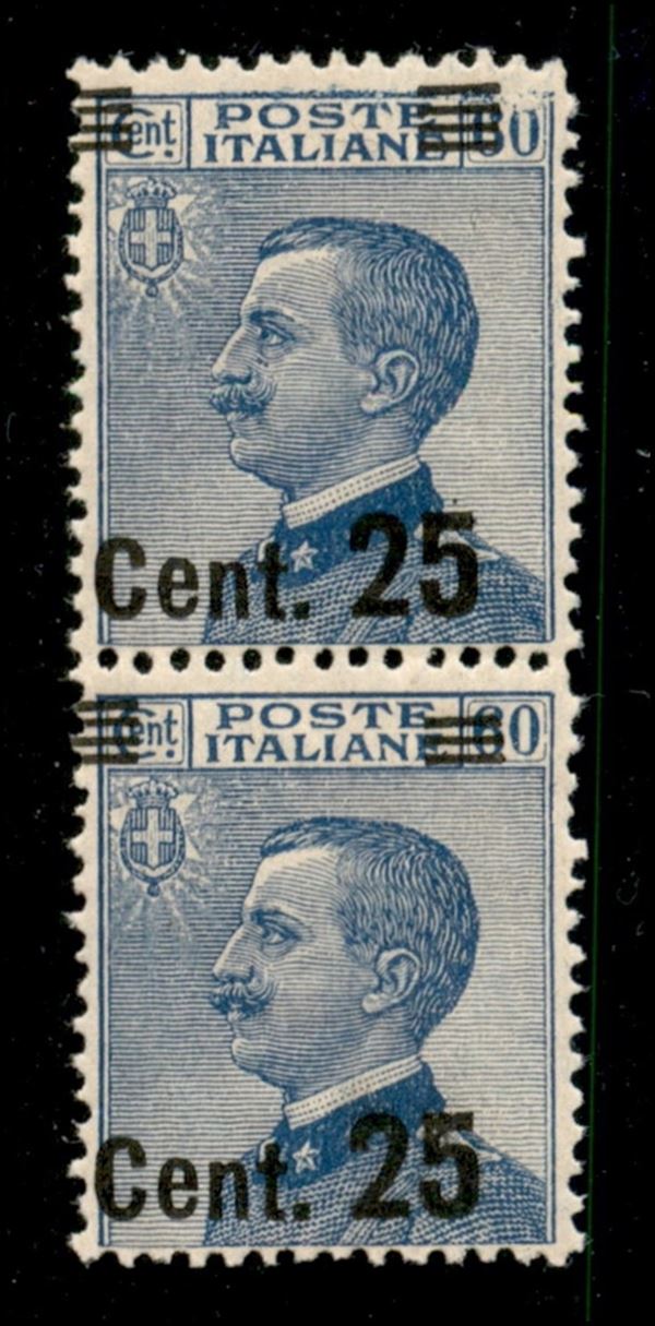 1925 - 25 cent su 60 (179 + 179m) - coppia con soprastampe a sinistra - pezzo inferiore con 3 sbarrette a destra - gomma integra